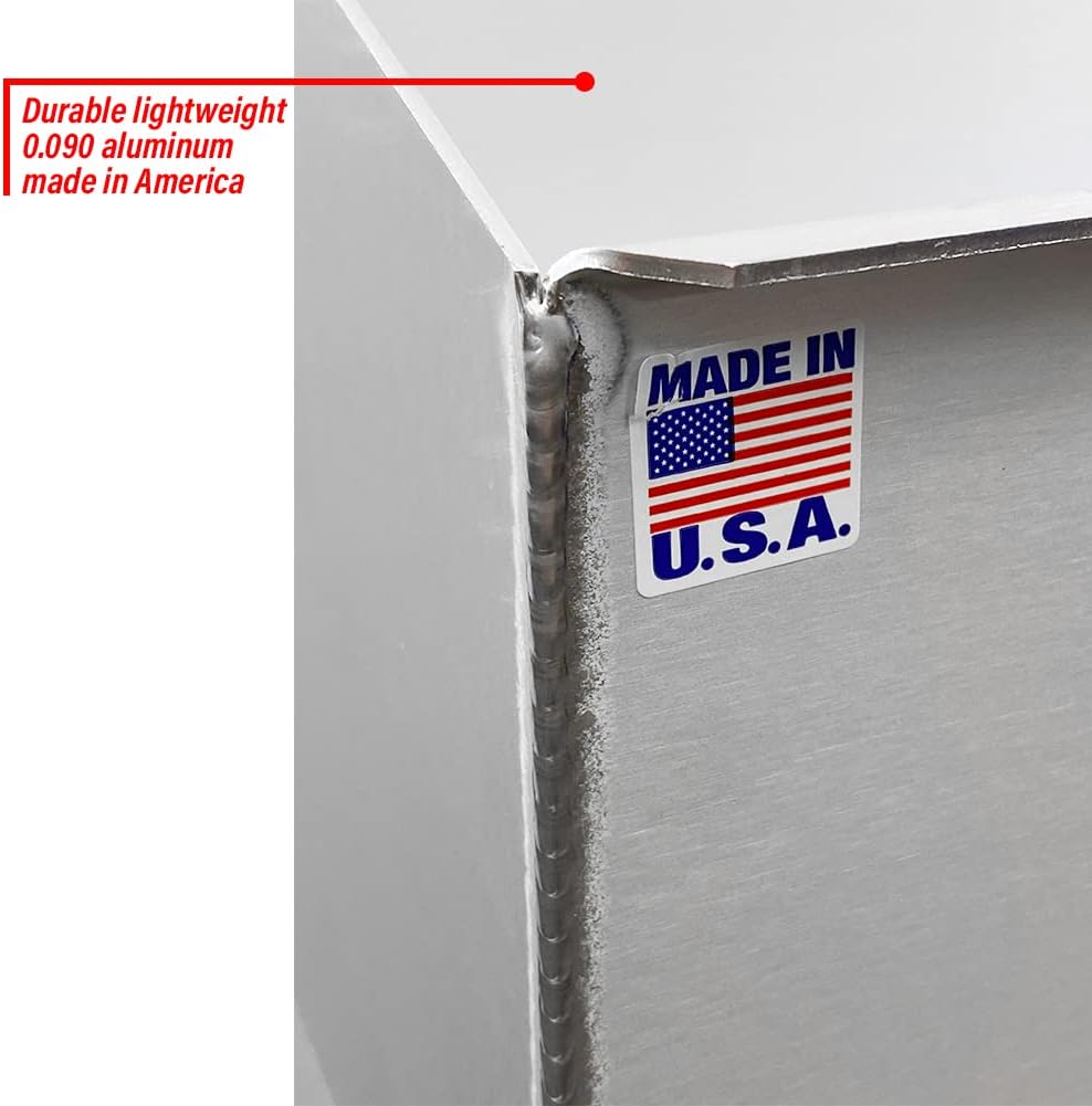 - ✅ Has a full back plate to prevent jugs from rubbing against trailer wall.
