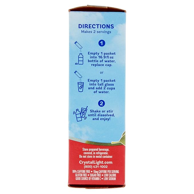 - Each Crystal Light On The Go Box Contains 10 Individual Packets That You Mix with Up to 16.9 Fluid Ounces (500 ml) of Water