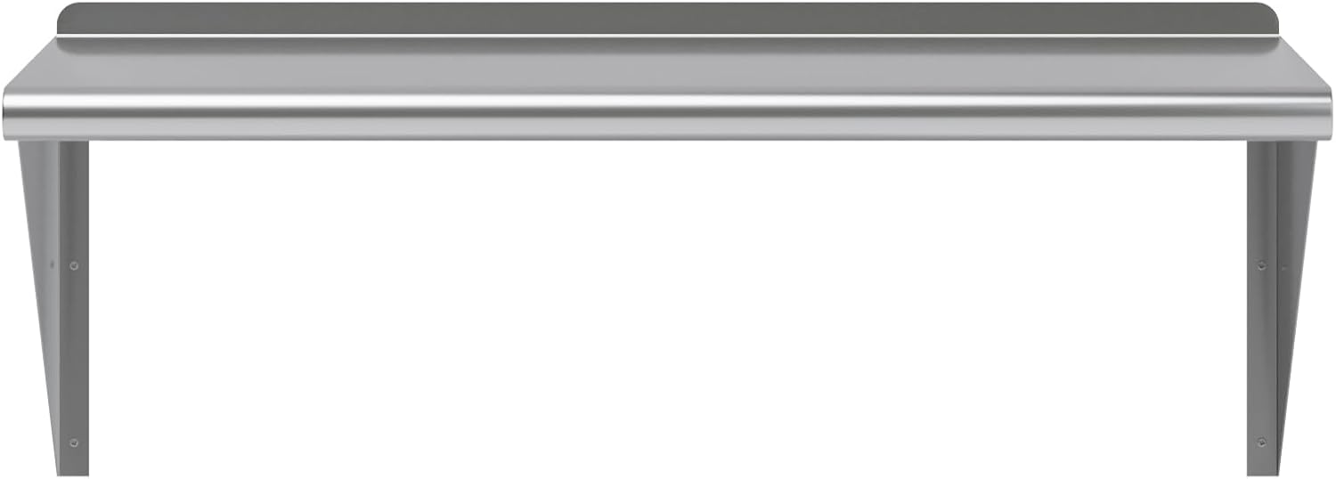 - This heavy-duty multifunctional stainless wall shelf is made with 18 gauge stainless steel and can hold up to 340 lbs of weight. The design features a 1" backsplash and bullnose edge. It's made with durable welded corners and support brackets.