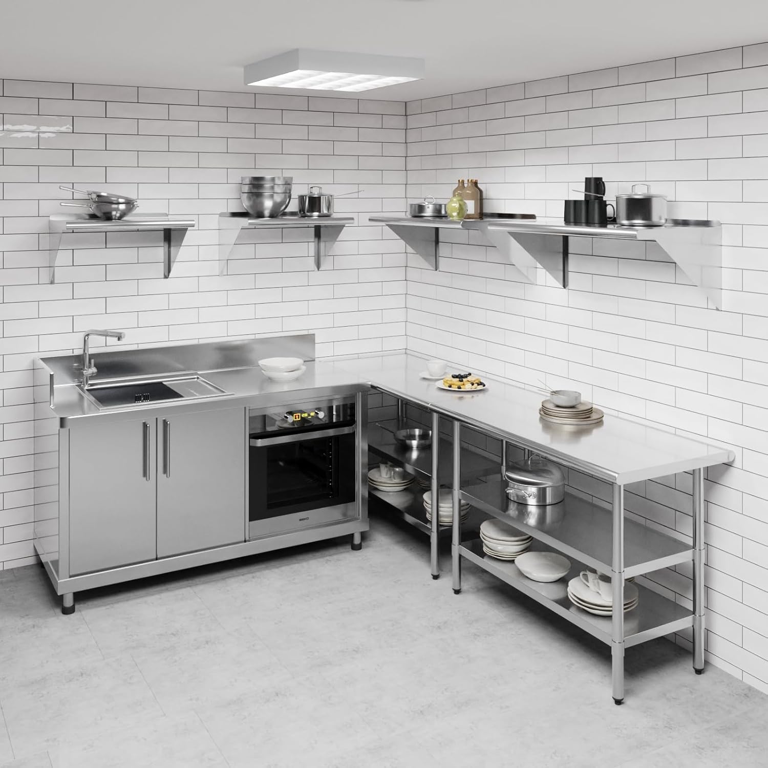 - Its professional, modern and sleek design makes this metal floating shelf perfect for use in any residential or commercial kitchen, food truck, garage, closet, laundry room, utility and equipment room, lab, appliance shelf for toaster and microwave, etc.