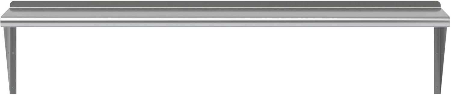 - This heavy-duty multifunctional stainless wall shelf is made with 18 gauge stainless steel and can hold up to 350 lbs of weight. The design features a 1" backsplash and bullnose edge. It's made with durable welded corners and support brackets.