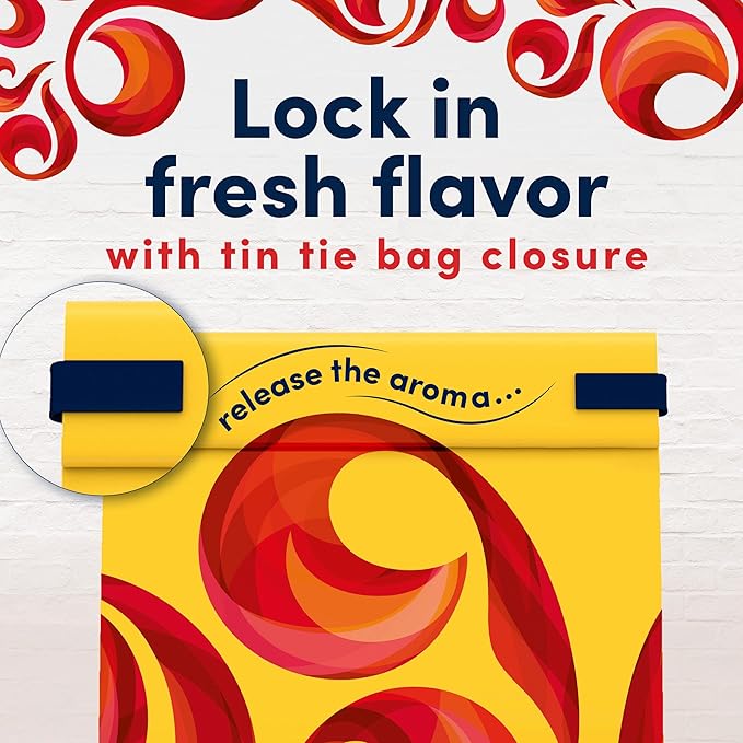 - Resealable bag of ground decaf coffee with fresh lock tin tie retains flavor and aroma