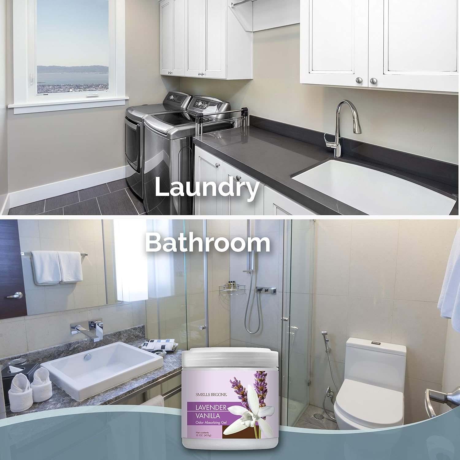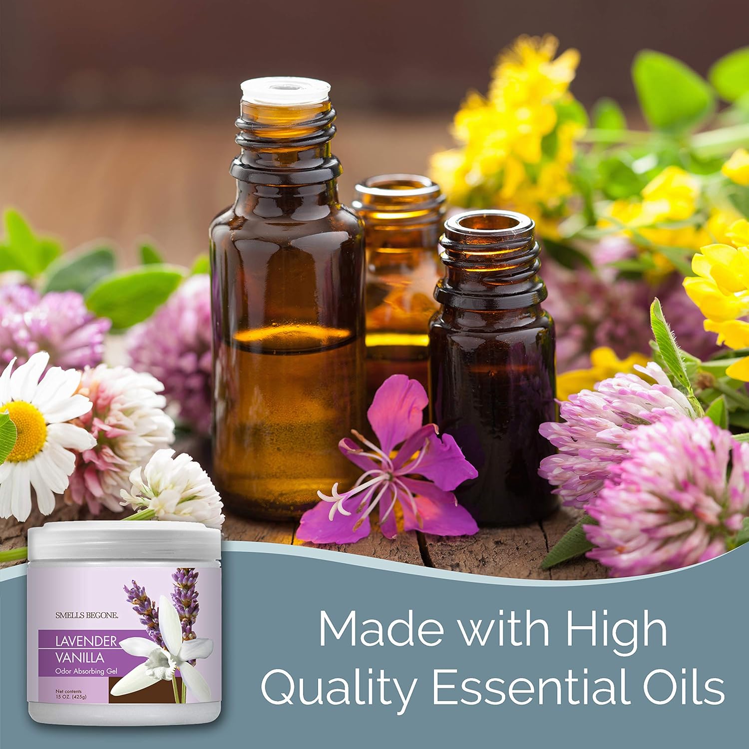SMELLS BEGONE Air Freshener Odor Absorber Gel - 15 oz, Pack of 2 - Absorbs and Eliminates Odor in Pet Areas, Bathrooms, Cars, & Boats - Made with Essential Oils - Lavender Vanilla Scent