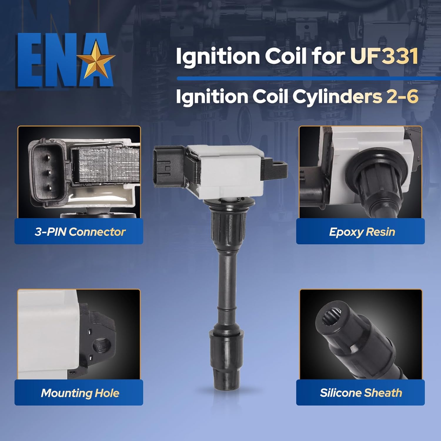- Reference Number: Ignition coils Cylinders 1 replacement for UF328 UF-328 224484W000 224484W001. Coil Pack Cylinders 2-6 replacement for UF331 UF-331 224484W010 224484W011 UF331T. ENA Ignition Coils Features: plug-and-play design that allows for easy installation and are compatible with popular vehicles such as 2000 2001 Pathfinder QX4 V6 3.3L 3.5L