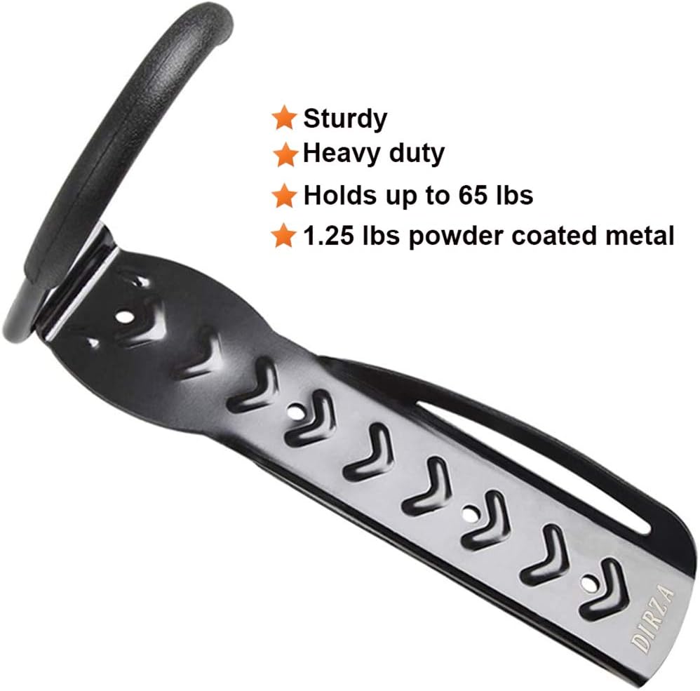 Dirza Bike Rack Garage Wall Mount Bike Hanger Storage System Vertical Bike Hook for Indoor Shed - Easily Hang/Detach - Heavy Duty Holds up to 65 lb with Screws Black
