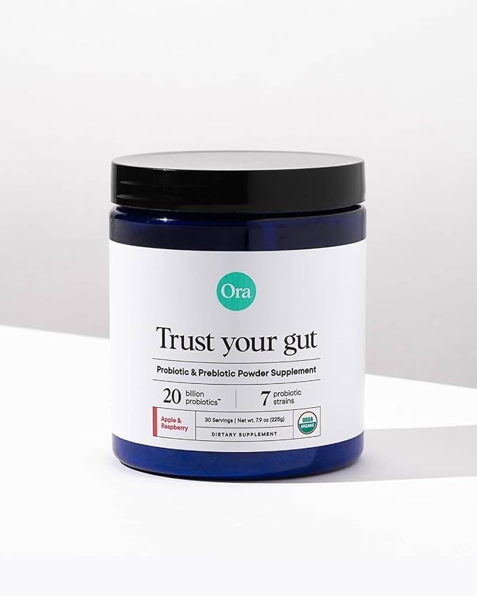 Ora Organic Prebiotic and Probiotic Powder Supplement - 20 Billion Probiotics, 7 Strains for Best Prebiotic Powder, Non-GMO, Probiotics for Women, Men & Kids - Apple Raspberry Flavor, 30 Servings…