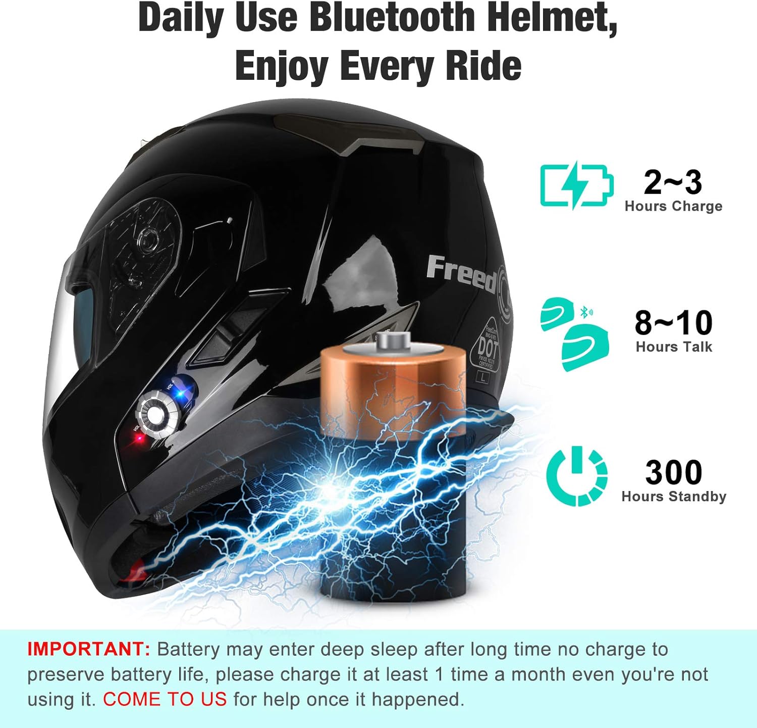 - βͺ [ DOT Modular Motorcycle Helmet ] FreedConn Bluetooth helmet supports max intercom range up to 1640 feet for 2 riders talking or 3 riders pairing. We had meets and exceeds DOT safety standards, don't worry about the safety while riding.