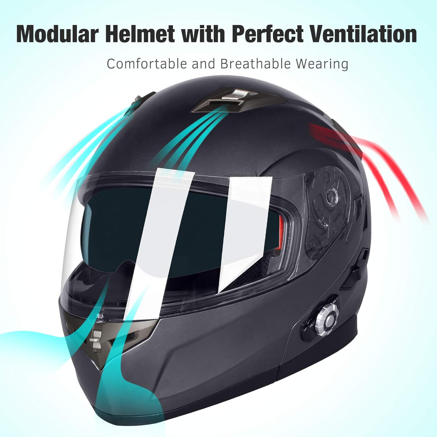 - βͺ [ 3.0 Bluetooth Motorcycle Helmets ] Motorcycle helmet with Bluetooth 3.0 technology allows you to enjoy music, FM, GPS voice prompt and intercom stably while riding, makes team motorbike communication more convenient and efficient.