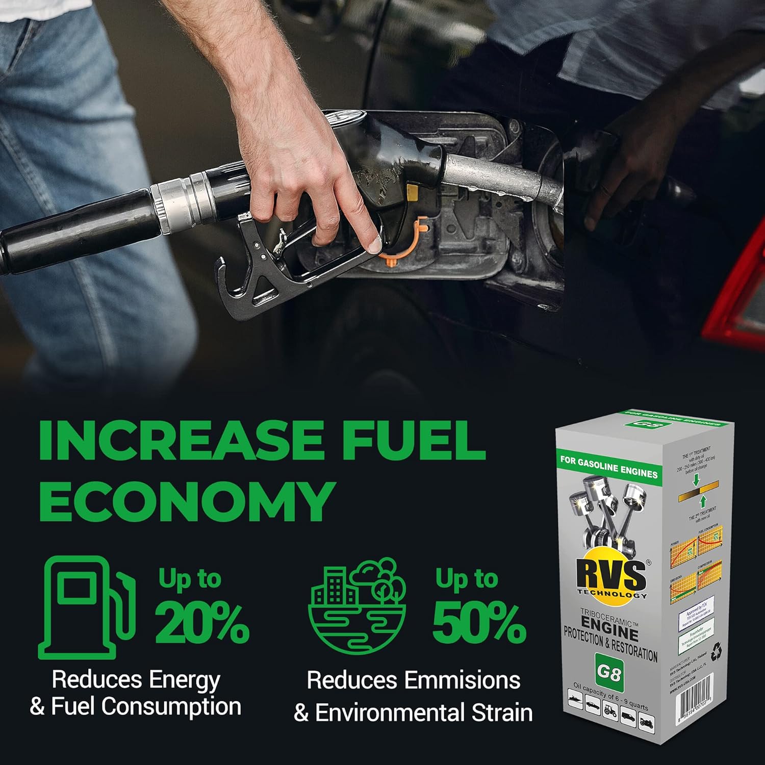 G8 Engine oil Treatment. for Gasoline Engines with an Motor Oil Capacity up to 9 quarts. Boost Power and Safely Restore and protect your Car, Truck, Motorcycle and all other engines