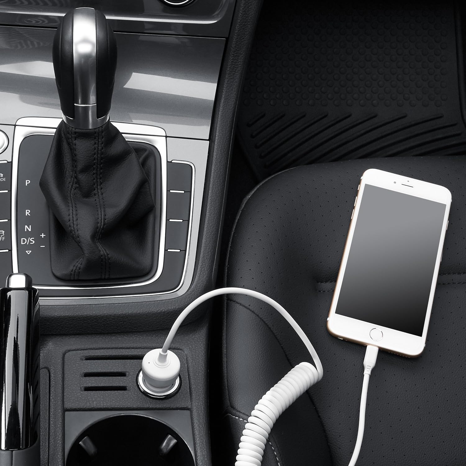 - Lightning car charger for charging portable Apple devices when traveling in the car