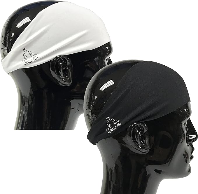 - Two Temple Tape Sweatbands per Order (1-Black, 1-White) - Unisex, one size fits most - 4 inch Wide Band