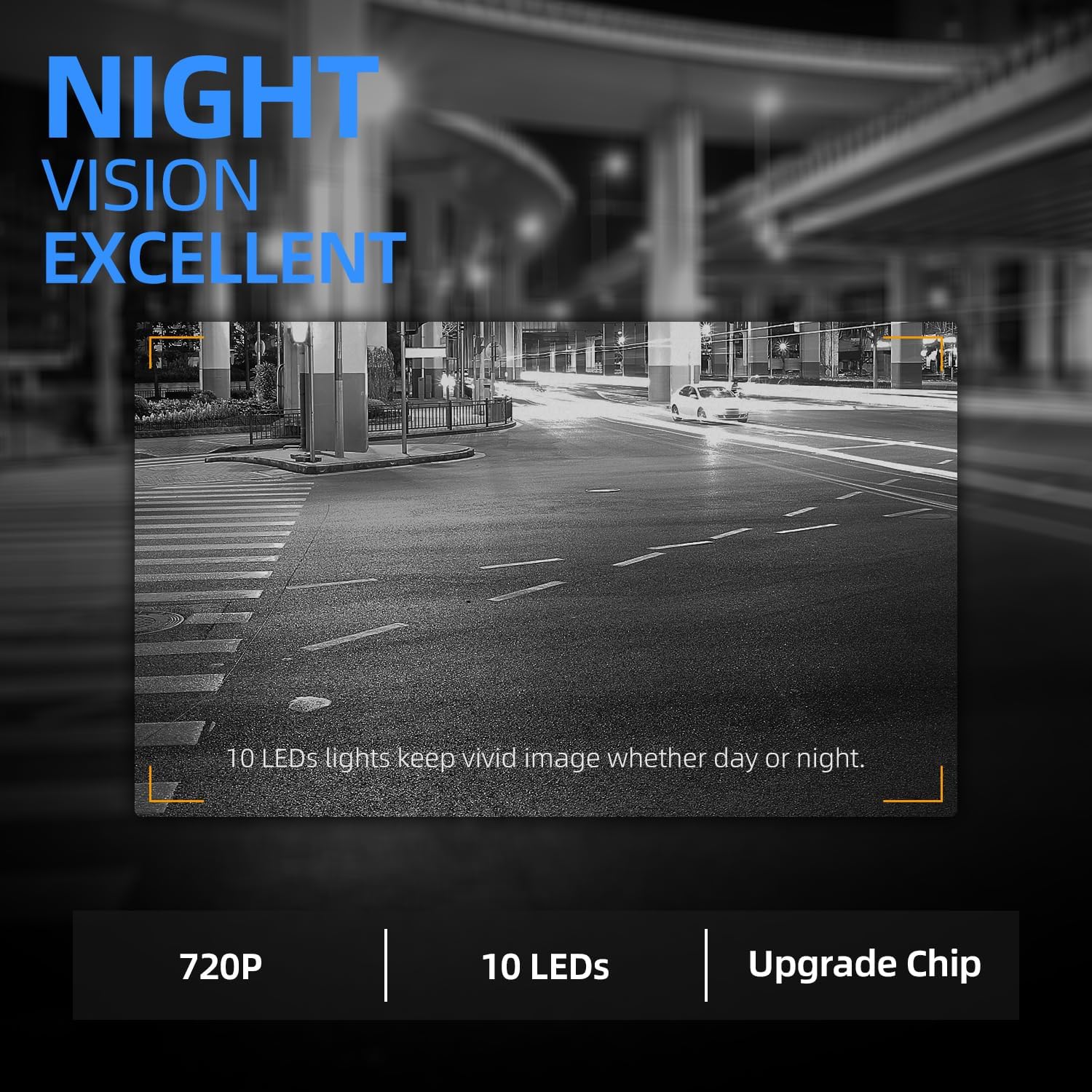 - Crystal Clear Image & Nice Night Vision: 6 glass lenses, 100% true color reproduction, the latest upgraded chip, generate clear real-time video. 10 LED lights automatically fill the light when powered, get a great color image in the dark for safe reversing and driving.