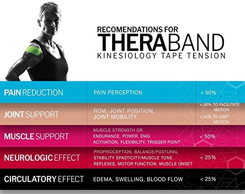 - THERABAND Kinesiology Tape features best-in-class adhesive and unique, breakthrough XactStretch Indicators that give users a visual application guide to ensure the right stretch is applied every time
