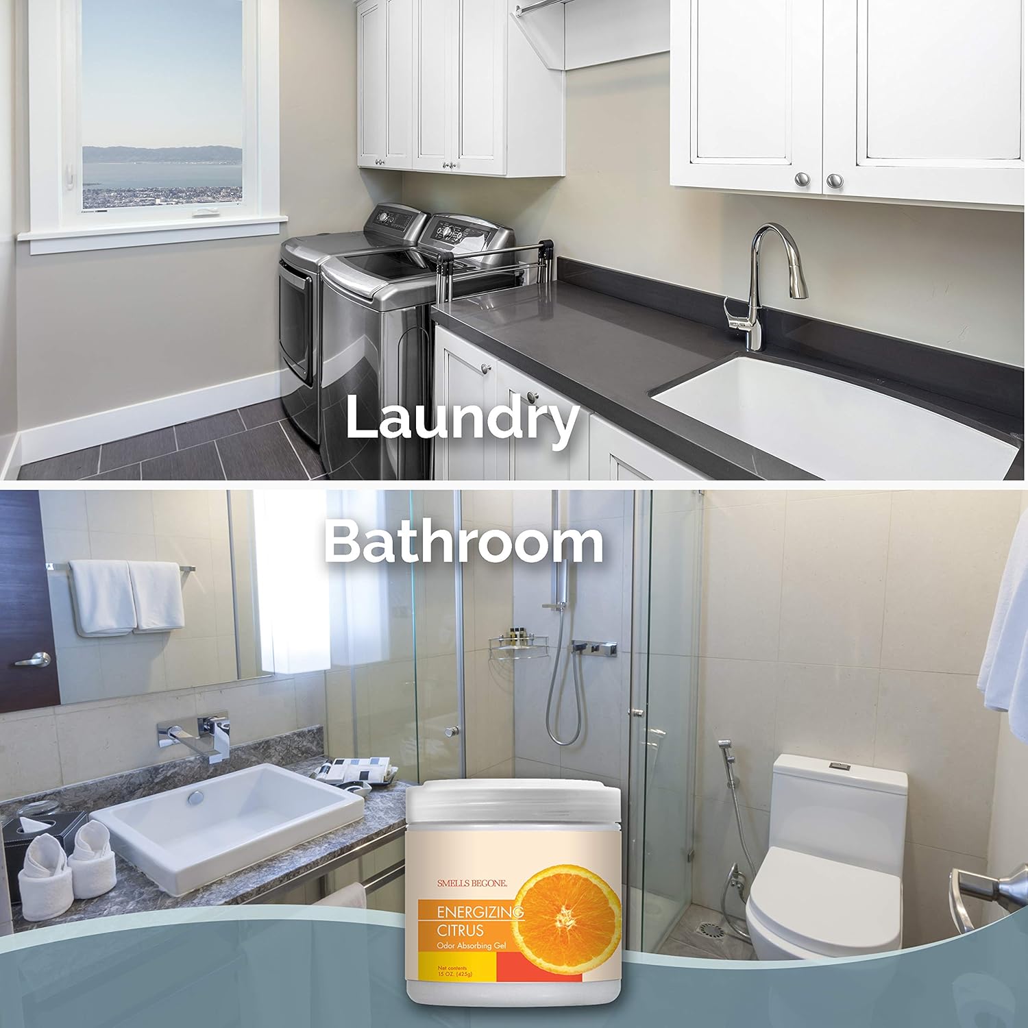 SMELLS BEGONE Air Freshener Odor Absorber Gel - 15 oz, Pack of 2 - Absorbs and Eliminates Odor in Pet Areas, Bathrooms, Cars, & Boats - Made with Essential Oils - Energizing Citrus Scent