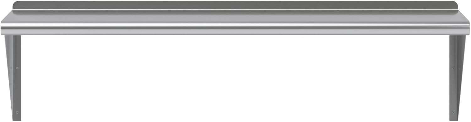- This heavy-duty multifunctional stainless wall shelf is made with 18 gauge stainless steel and can hold up to 310 lbs of weight. The design features a 1" backsplash and bullnose edge. It's made with durable welded corners and support brackets.