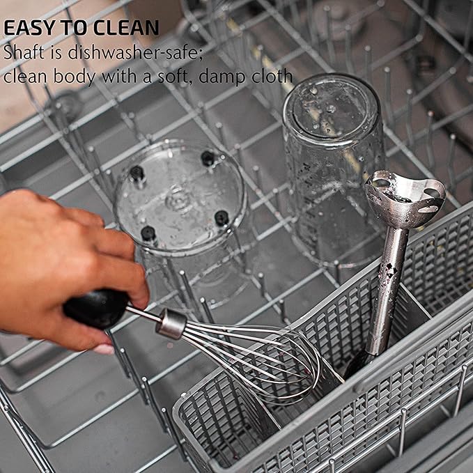 - Packed With Attachments β It includes a food chopper that can be attached to the motor housing for chopping, a beaker that can be used for measuring liquid, and a stainless-steel egg whisk for whisking cream, egg whites, and other treats.