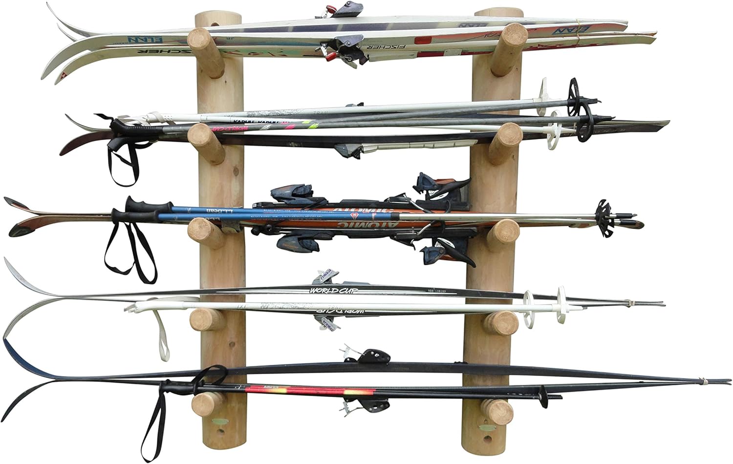 - 100% NORTHERN WHITE CEDAR CONSTRUCTION - Built from the finest Northern White Cedar, this ski rack garage storage solution is designed to withstand harsh conditions, both indoors and out. The decay-resistant wood ensures that your garage ski rack wall mount remains strong and reliable for years to come. Whether in your garage, shed, or cabin, this durable ski holder wall mount offers a stable and attractive option for ski gear storage that stands up to the elements.