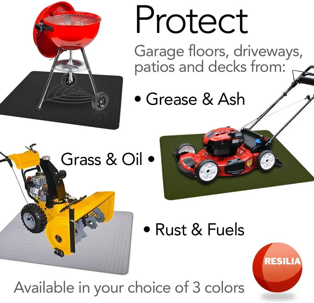 RESILIA Garage Mat, Prevents Stains Decorative Embossed Diamond Plate Pattern Black, 3 Feet x 4 Feet, Made in The USA