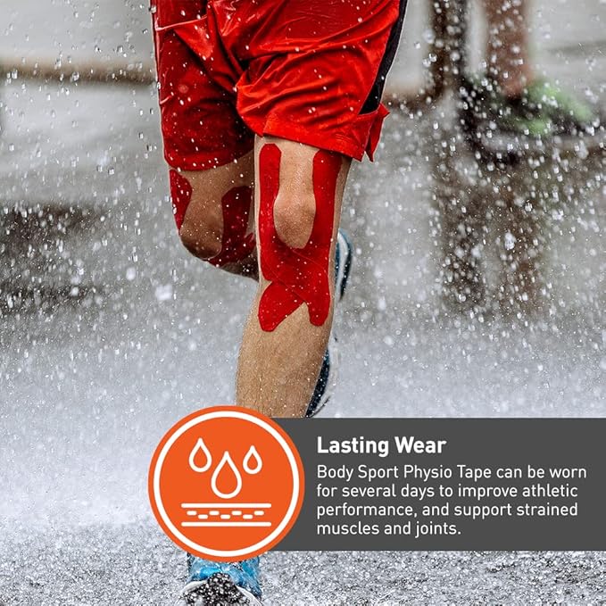 - Water-Resistance - Body Sport Physio Tape is a water resistant kinesiology tape that maintains its adhesion even if the user is perspiring heavily from exertion