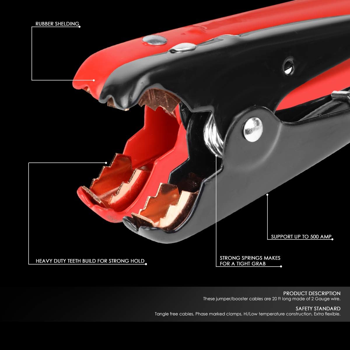 - ▶️ 2 Gauge 20 Feet ; Rated for up to 600Amps ; Storage Bag with Zipper