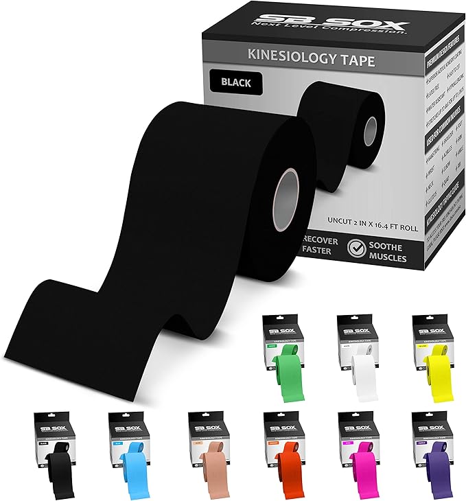 SB SOX Original Cotton Kinesiology Tape Roll – Best Latex Free Athletic Tape for Muscles/Joints – Waterproof, Stretchy, and Gentle on Skin (16ft)