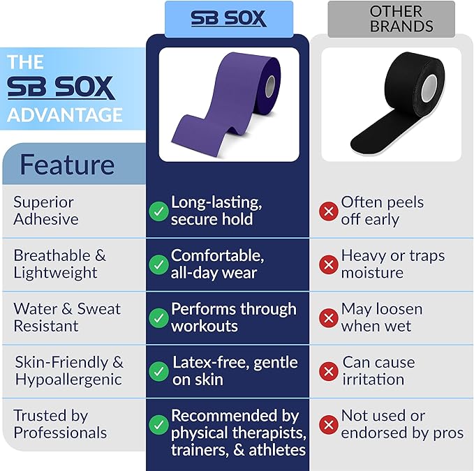 SB SOX Original Cotton Kinesiology Tape Roll – Best Latex Free Athletic Tape for Muscles/Joints – Waterproof, Stretchy, and Gentle on Skin (16ft)