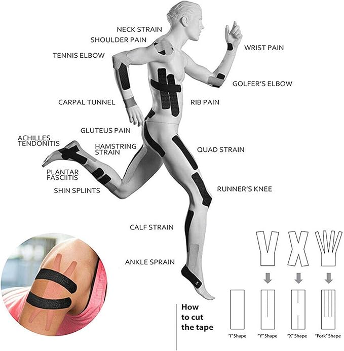 - Boost Your Performance - The kinesiology tape is designed to facilitate the bodyโs natural healing process by providing support to your muscles and joints, reduce pain and inflammation, boost blood circulation and promote lymphatic drainage. Ideal for Running,Cycling, Mountain biking, Hiking and more