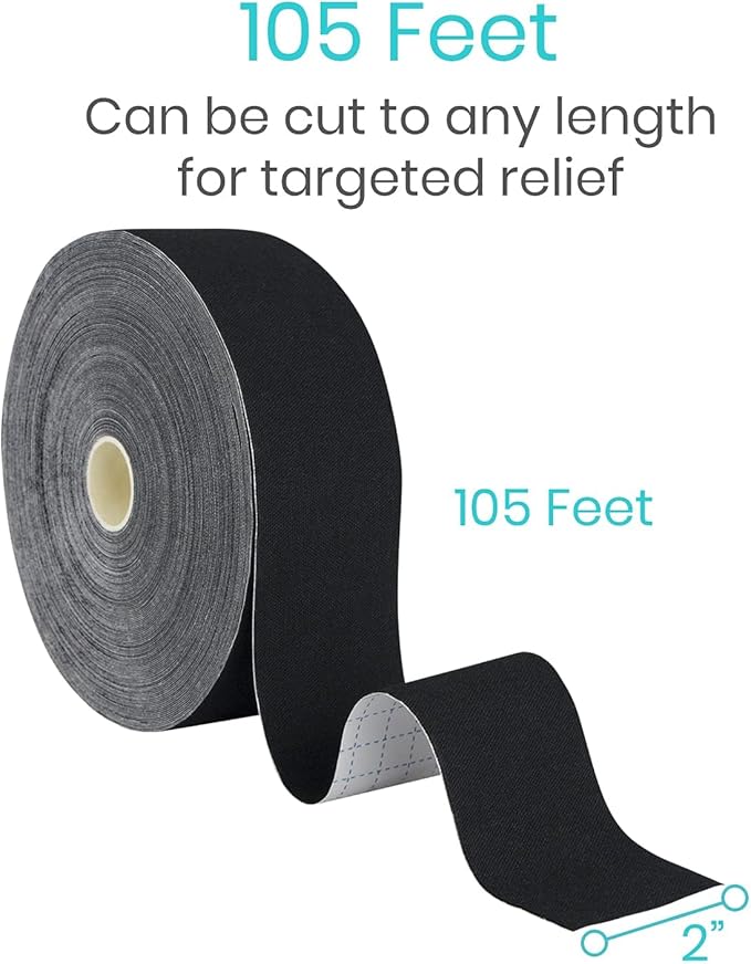 Vive Kinesiology Tape (105 Feet) - Therapeutic Athletic Support Tape - Uncut Kensio Roll - Muscle and Joint Recovery for Shoulder, Back, Knee, Elbow and Ankle Pain Relief - Waterproof for Sports