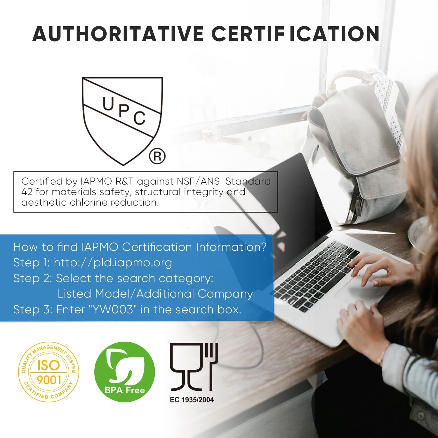 - ❄️【Authoritative Certifications】The rv filter is certified by NSF/ANSI 42 for reducing chlorine, taste, and odor, and NSF/ANSI/CAN 372 for lead-free compliance. It removes 99% of chlorine, enhancing water taste. It is also certified by Canadian CSA, BPA Free, and Australian Water Mark. Only select products with authoritative certifications for your households.