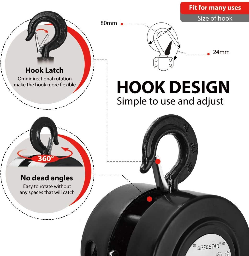 - SAFE USE - Engineered to meet ASME B30.16 overhead hoist safety standards, it is equipped with 360Β° rotating fully forged drop-down steel hooks, pre-lubricated ball bearings, and precision-machined drive train components; This ensures smooth operation, minimizing manual effort