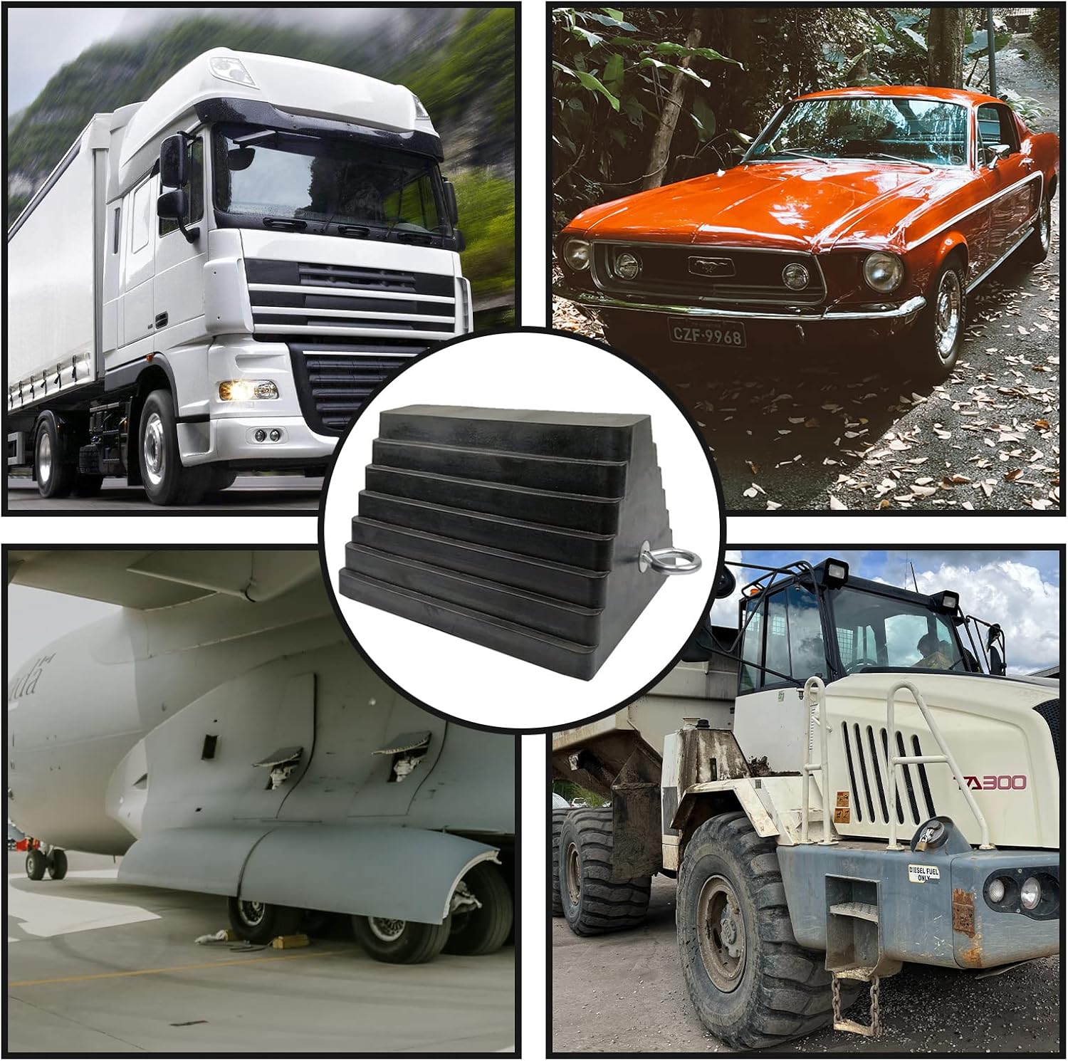 - Multifunction: The triangular design allows the chock to be easily placed against the wheel and used as truck chocks, camper tire stabilizers, RV wheel chocks, trailer chocks; Ideal for commercial vehicles and cargo as well as personal passenger vehicles and campers