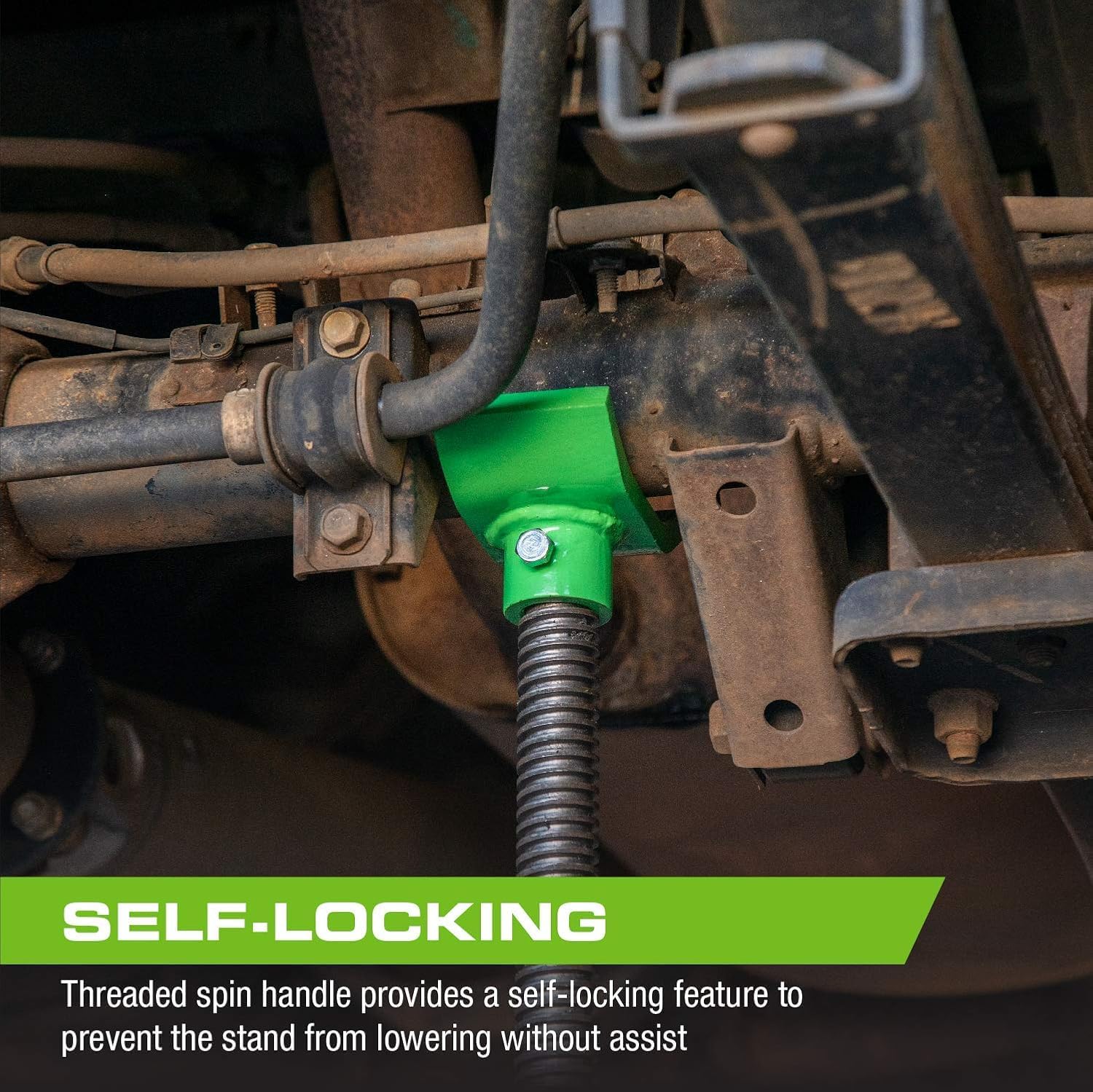 - Threaded Spin Handle: Self-locking threaded mechanism prevents unintentional lowering under load for added safety