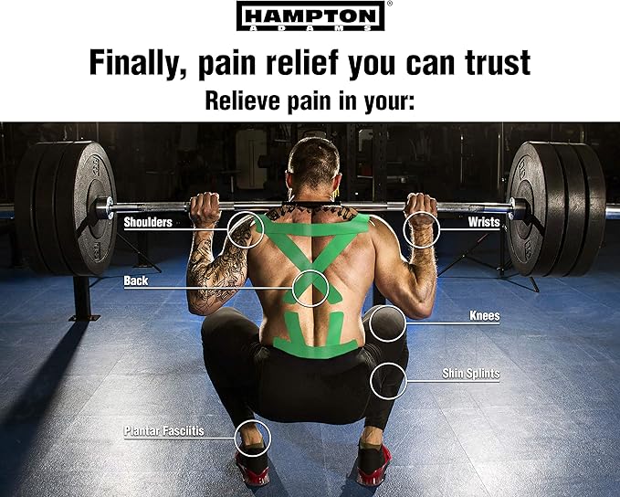 Hampton Adams | As Seen on Shark Tank | Elastic Kinesiology Tape (2-Pack) | Uncut Athletic Tape Supports & Protects Muscles Knees Shoulders & Plantar Fasciitis | Waterproof Hypoallergenic (Green)