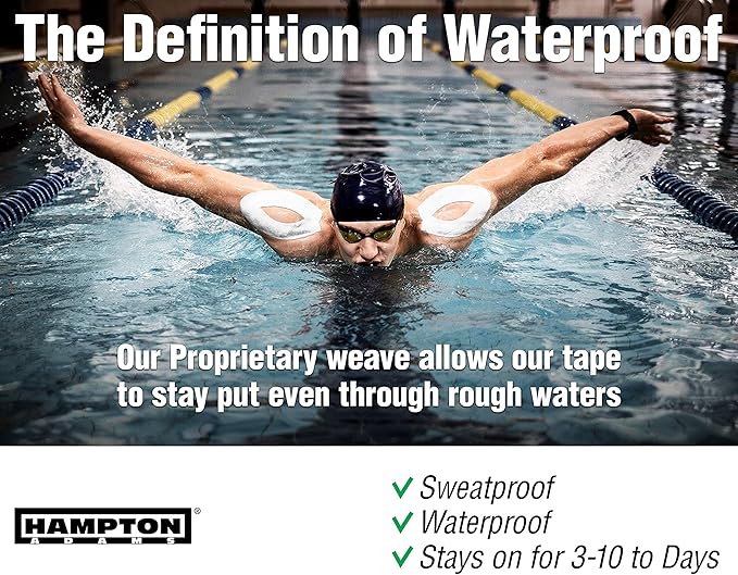 Hampton Adams | As Seen on Shark Tank | Elastic Kinesiology Tape (2-Pack) | Uncut Athletic Tape Supports & Protects Muscles Knees Shoulders & Plantar Fasciitis | Waterproof Hypoallergenic (White)