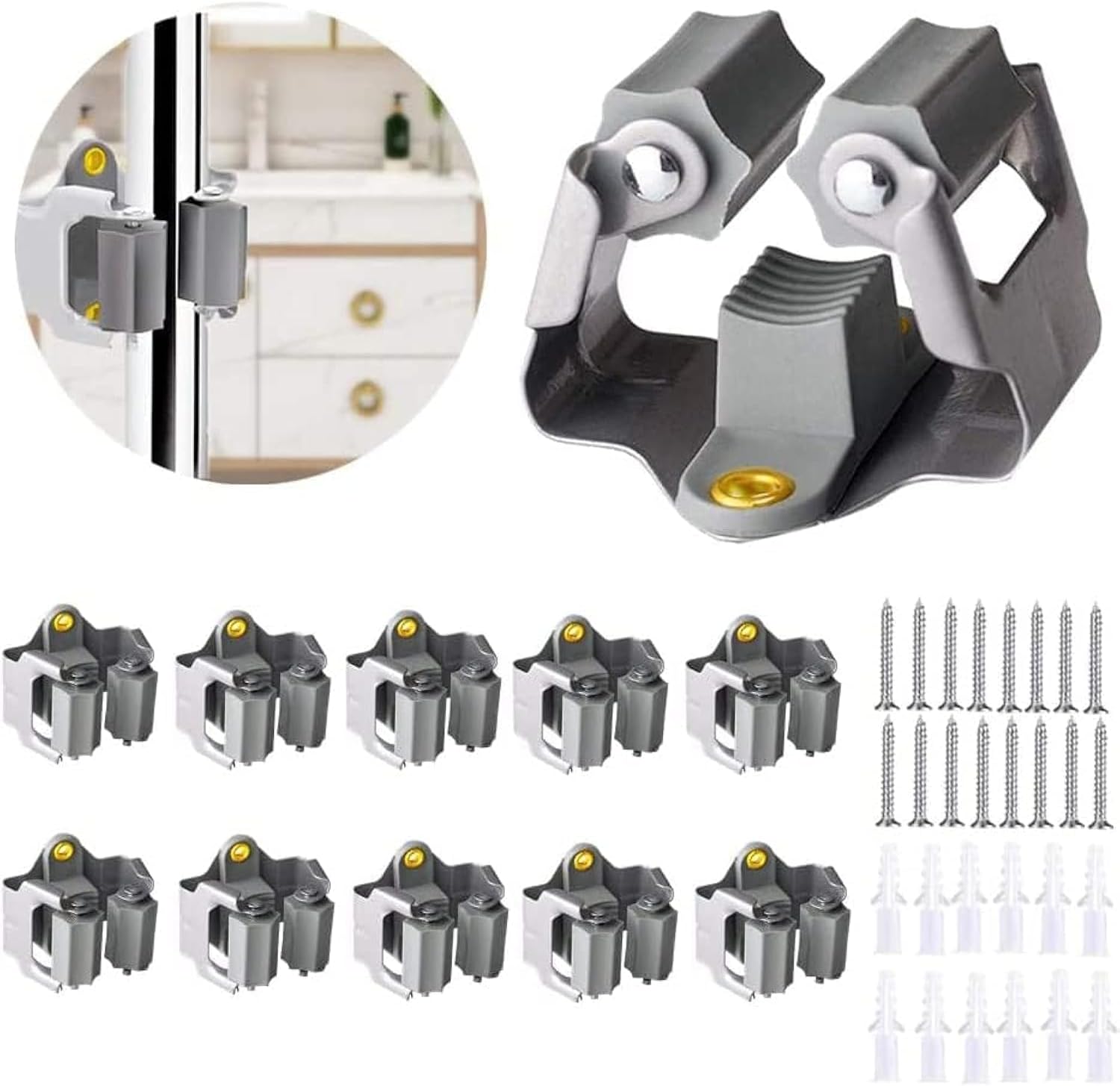 3-H 10 Pack Mop and Broom Holder Big Size Hanging 1 KG Extra, Broom Holder Wall Mount for Hanging and Organizing Shove Rake Yard Tools in Kitchen Shed Laundry Room Bathroom Garden(grey)