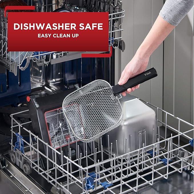 T-fal Deep Fryer with Basket, Electrics Stainless Steel 3.5 Liter Oil Capacity, 2.6 Pound Food Capacity 1800 Watts Easy Clean, Temp Control, Digital Timer, Oil Filtration, Dishwasher Safe Parts Silver