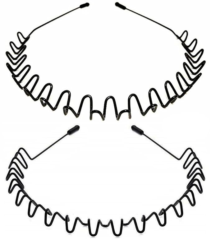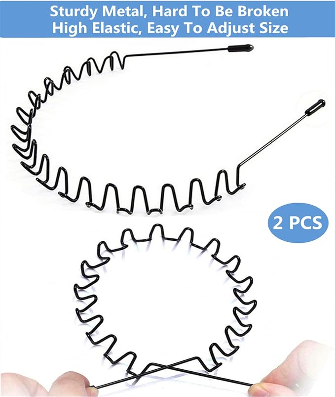 bodbop XINGZHE Metal Hairband - Unisex Elastic Non-Slip Wavy Headband for Sports, Fashion, 2 PCS