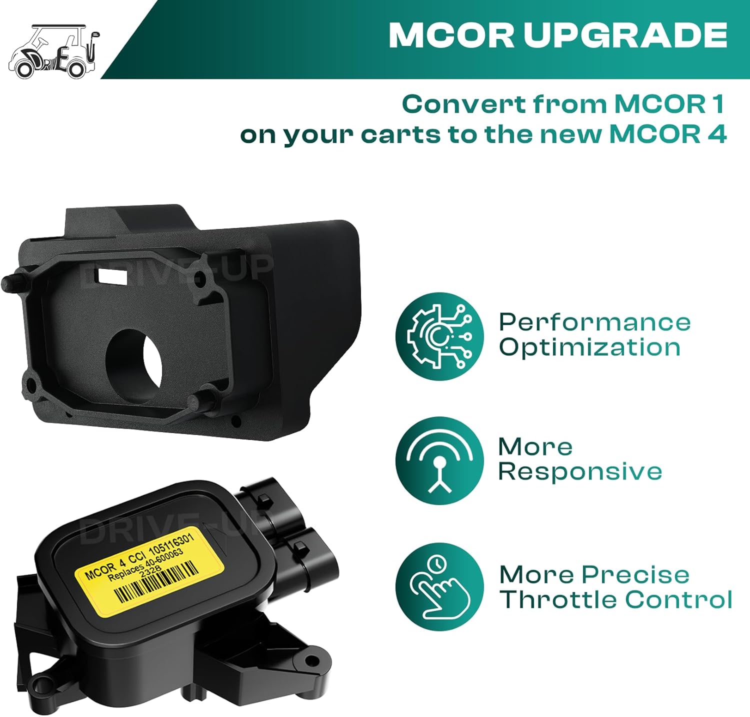 - Drive-up MCOR 4 Conversion Throttle Potentiometer: Convert from MCOR 1 on DS carts to the new MCOR 4