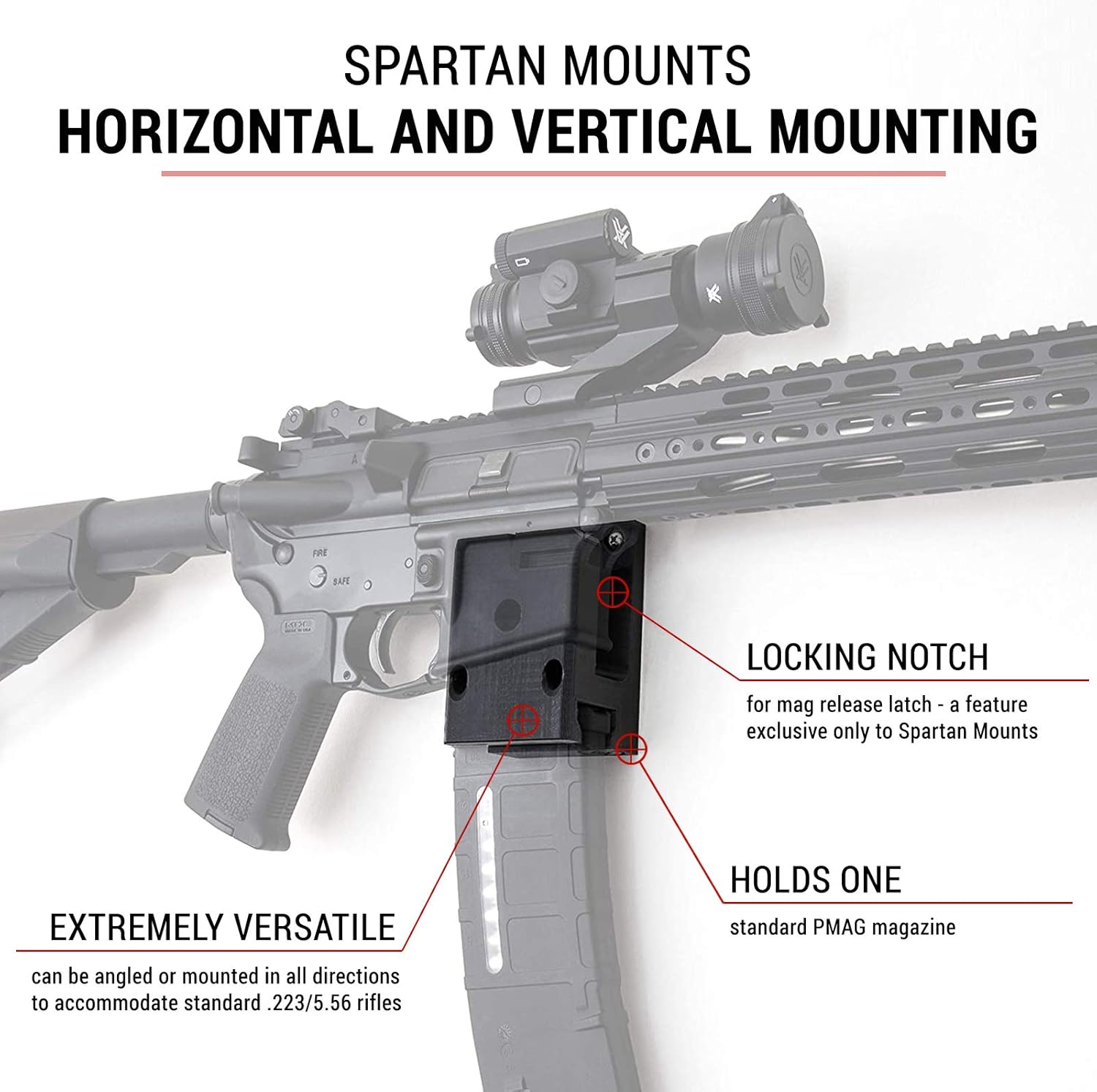 Spartan Mounts Locking .223/5.56 Rifle Mount Wall Display | Low Profile Floating Design Vertical and Horizontal Mounting Solution | Gun Room Safe Storage Organzation | Made in USA