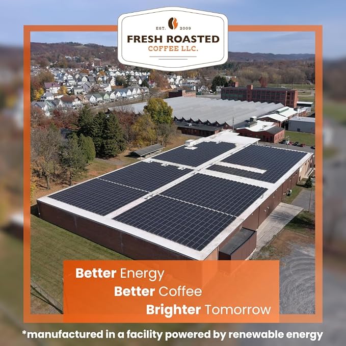 - Coffee is roasted in our environmentally friendly coffee roaster