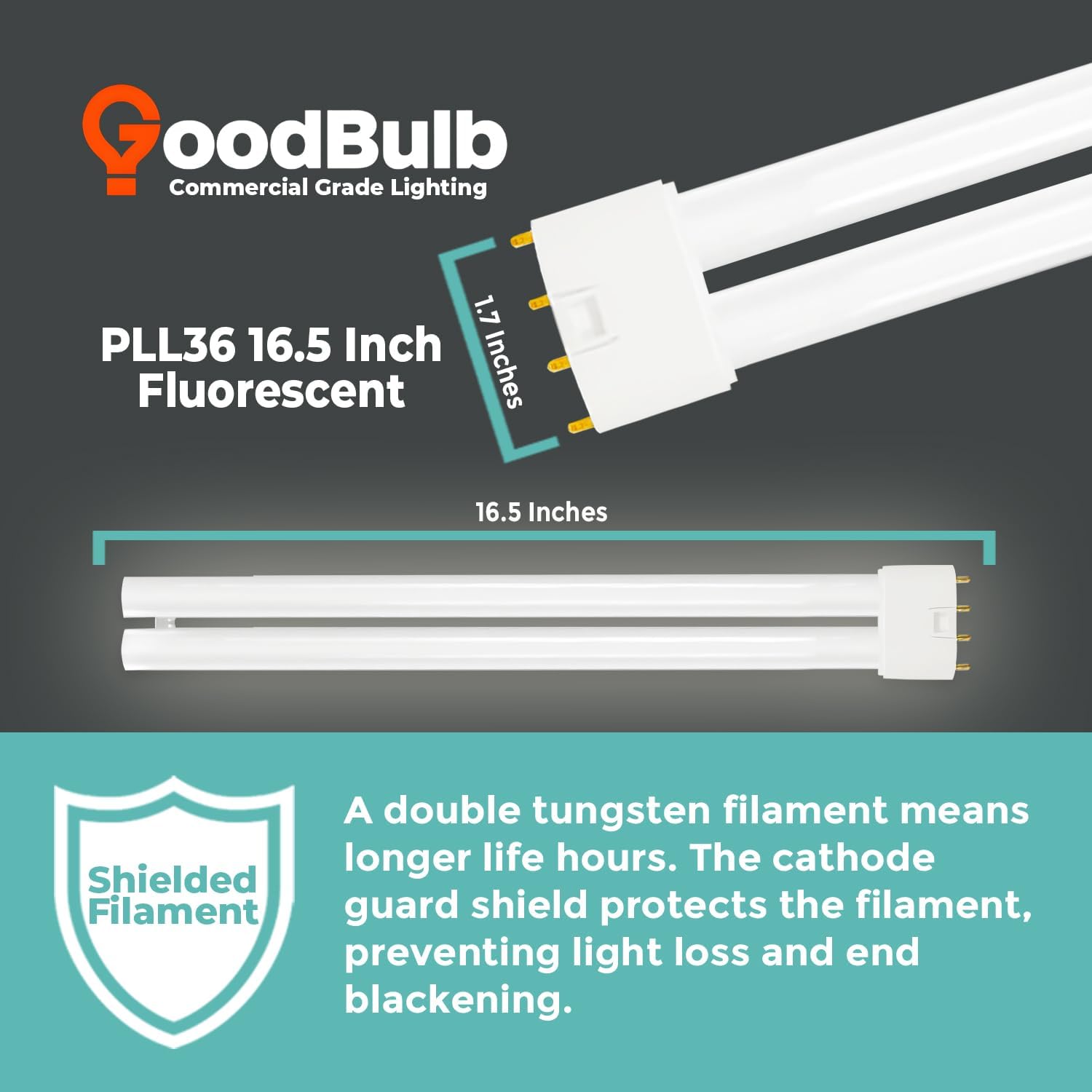 GoodBulb PLL36/841 36W 16.5" Twin Tube Compact Fluorescent Light Bulb 4-pin 2G11 Base 4100K Cool White 2400 Lumen 36000 Hour Long Life Biax Pack of 10