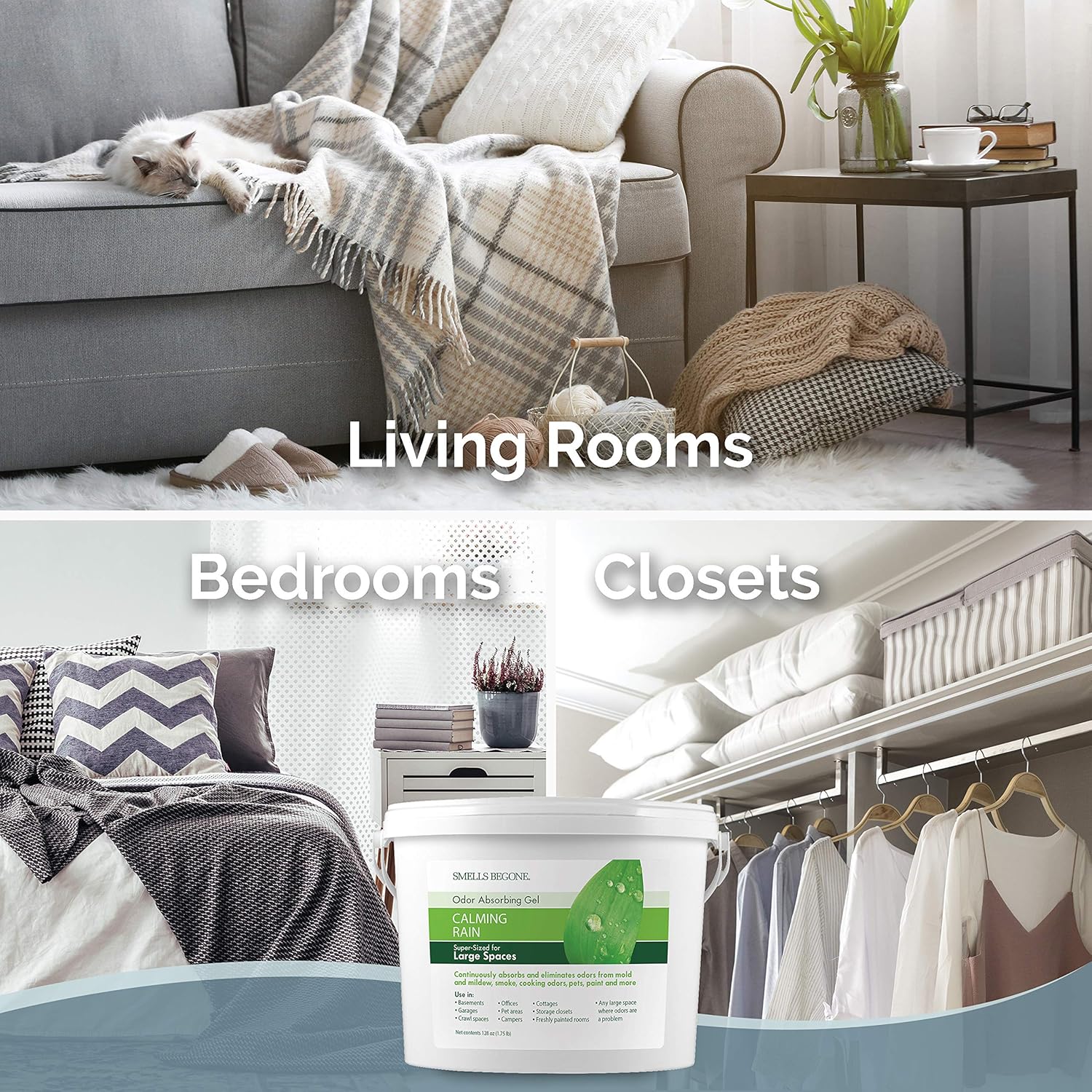 SMELLS BEGONE 1-Gallon Odor Absorber Gel - Air Freshener & Odor Eliminator for Homes, Garages & Commercial Buildings - Industrial Size - Calming Rain Scent