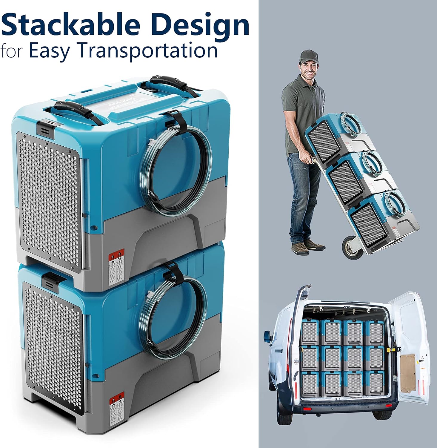 - App Control & Dry anywhere: MONITOR THE RESTORATION PROCESS ON THE GO! Our free AlorAir DryEasy mobile app is included with the unit upon purchase. Commercial Dehumidifier, Moisture Removal Capacity 180 PPD at Saturation condition and 85 Pint at AHAM only with 5.62A, Super-Efficient System, fits into small spaces, Secure, compact stacking – transport multiple units on a hand truck.