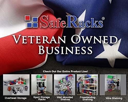 - INDUSTRIAL STRENGTH: Our industrial strength overhead garage racks are designed to hold up to 500 lbs each and are perfect for storing bikes, construction tools, storage bins, holiday decorations, and other items and accessories. The powder coat finish provides a durable, scratch, water, and rust-resistant surface; while case-hardened hardware and our patented ceiling brackets provide additional strength and safety for this hanging shelf.