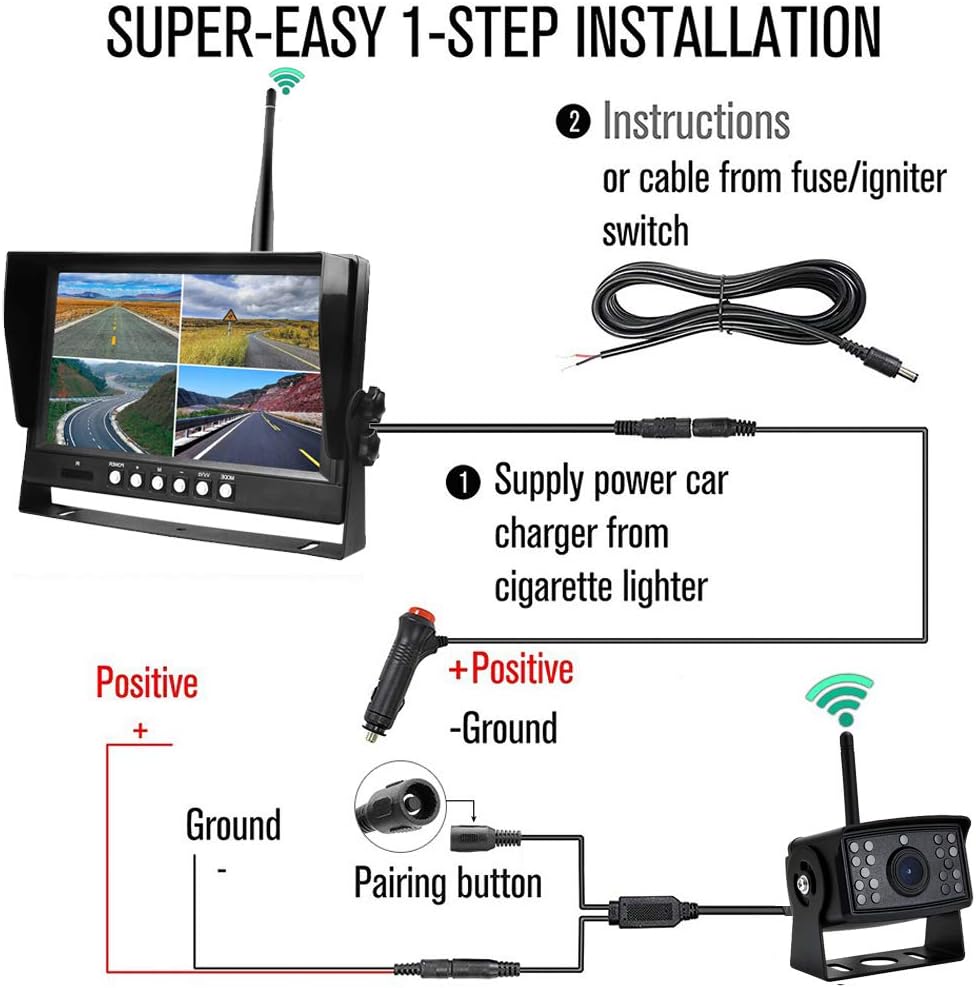 - 4PCS HD1080P CAR BACKUP CAMERAS: 18 Infrared Lights and HD 960P CMOS Sensor,Digital High definition Image Processor Will Present Superior Night Vision For You.Super IP69 Waterproof Standard.149ยฐ Wide View,Make Your Reversing More Confident and Safety, Please note you have to connect power for the cameras and the monitor.