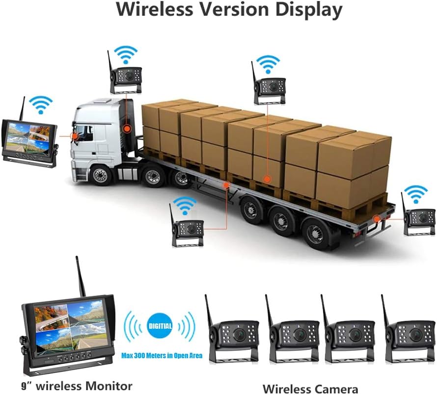 - QUAD Display HD 9 INCHS MONITOR: The monitor supports max 4pcs wireless camera and support 128GB SD Card for recording and playback, The Picture is Clearer Than Most Similar Products. Advanced IPS Technology Created a monitor which Fast Response and without Delay, Making Your Receiving More Confident and Safe.