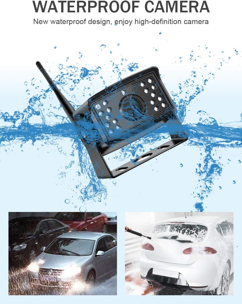 - STRONG WIRELESS DIGITAL VIDEO SIGNAL TRANSMISSION: 100% No interference, No additional wiring for video transmission.(please note the cameras have to be wired to the power). The wireless rear view camera boosts an digital video signal with an effective 100m signal range which ensures stable & smooth wireless video signals even at a car speed of 85 mile/h.
