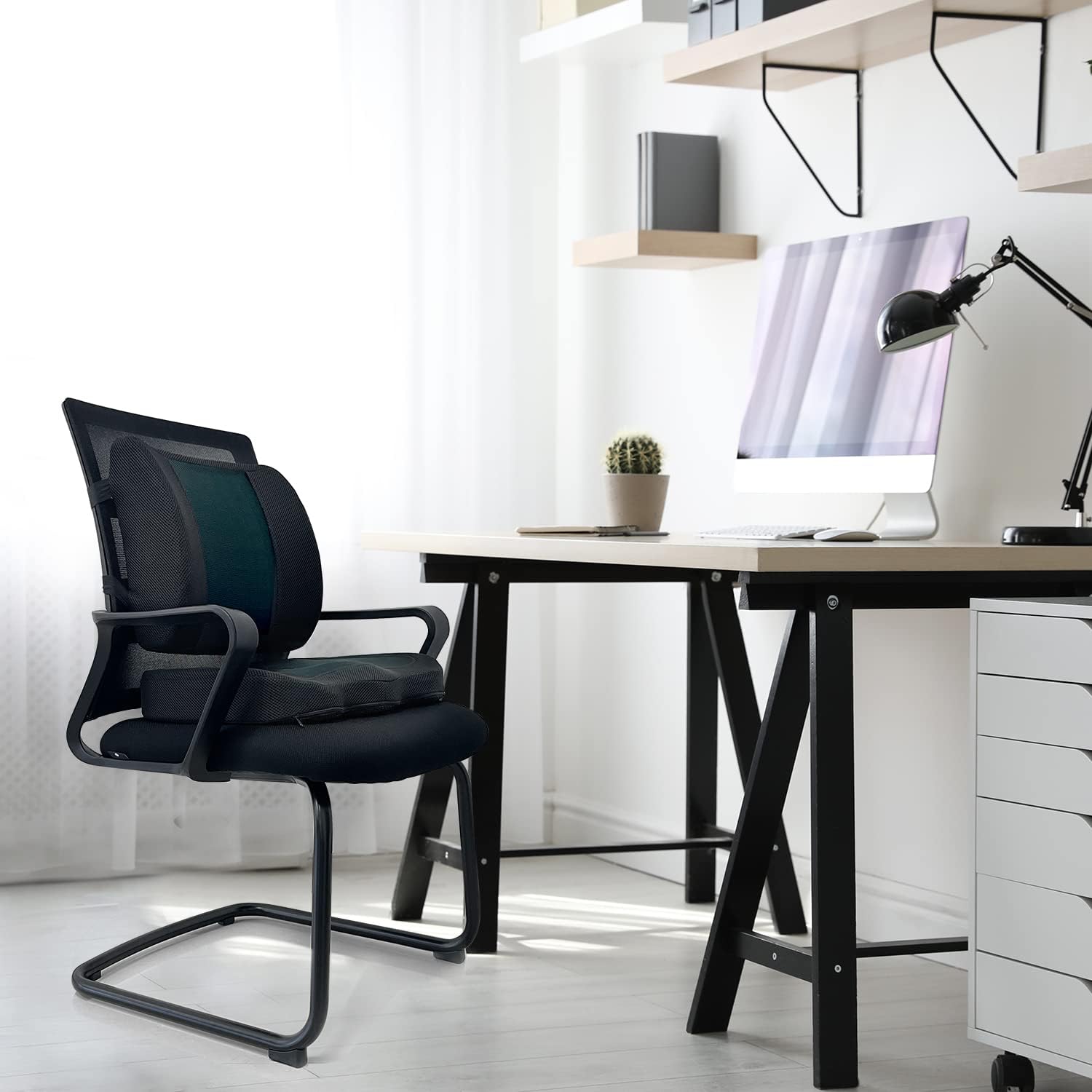 - PORTABLE CONVENIENCE: Easily transfer your desk seat cushion & lumbar support between chairs with its lightweight, movable design, offering comfort wherever you sit, from home to office or while traveling