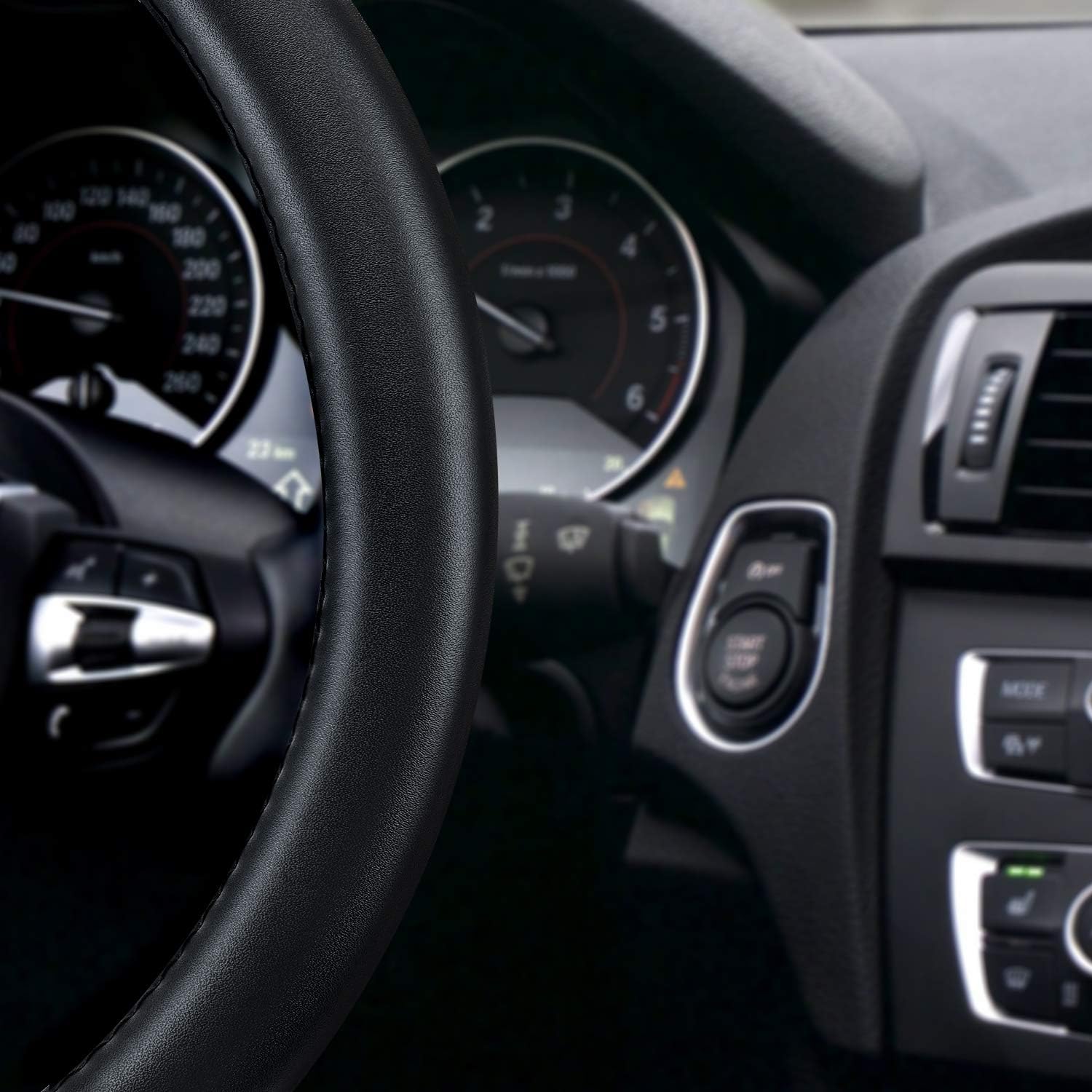 - TOP QUALITY MATERIAL: Black leather steering wheel cover is made of pure cowhide, natural, smooth, stable. The entire steering wheel has only one interface!