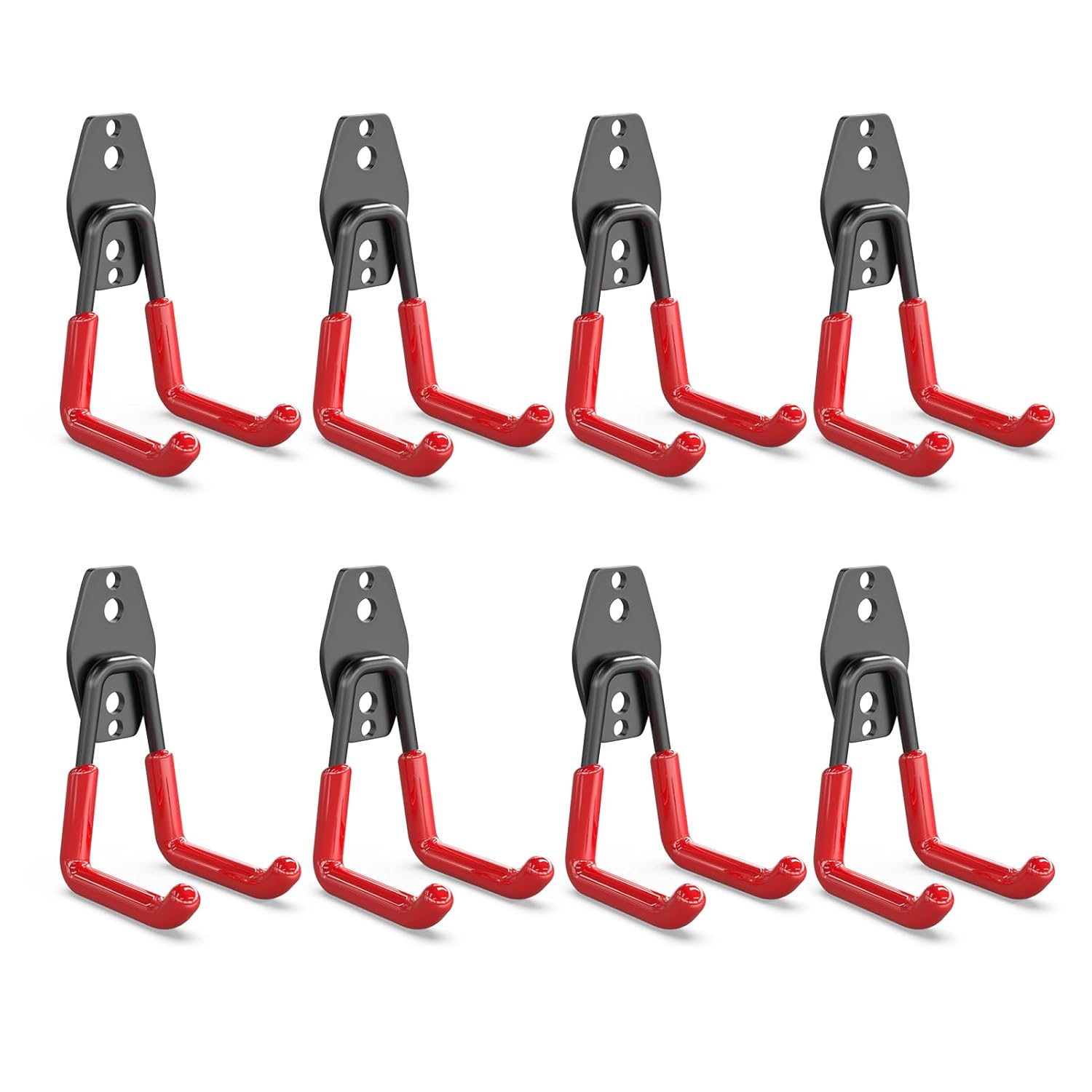 - PERFECT FOR HEAVY OBJECTS โGarage hooks is a set of 8 wall mounted double hooks,8 small U hook . The extended length and anti-slip coating let you organise and hang heavy objects for up to 80lbs.